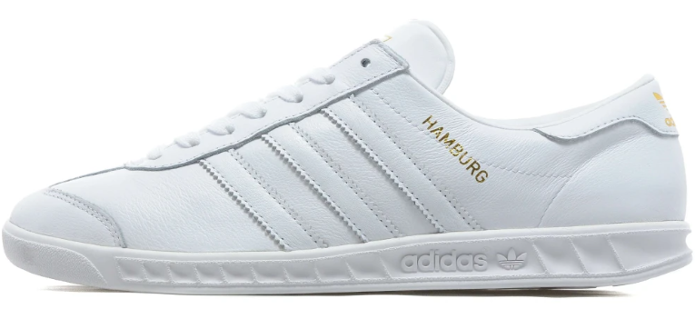Кроссовки Adidas Hamburg Core White выполнены из высококачественной белой кожи, которая не только придаёт им стильный и современный вид, но и обеспечивает долговечность и износостойкость. Белоснежная поверхность добавляет элегантности и легко сочетается с любым гардеробом, будь то спортивный костюм или повседневная одежда.