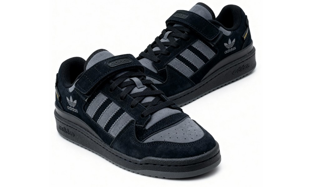 Adidas Forum Low Suede Black Grey — это уже давно классика, но в этой зимней версии она раскрывается по-новому. Верх выполнен из роскошной ворсистой замши глубокого черного оттенка. Этот благородный материал не только приятен на ощупь и выглядит дорого, но и отлично защищаетот пронизывающего ветра и легкой мороси. Цвет невероятно универсален — он будет идеально сочетаться с любыми джинсами, утепленными брюками чинос, темными джинсами или даже с классическим пальто, добавляя образу современную динамику.